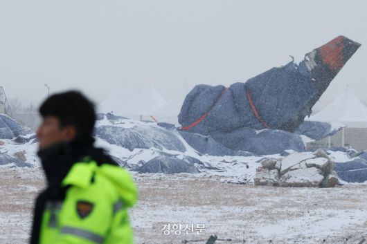 지난 1월 제주항공 여객기 참사가 발생한 전남 무안군 무안국제공항 사고 현장에 눈이 내리고 있다. 정효진 기자 |