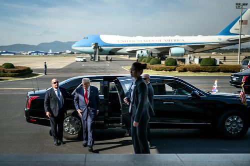 사진들은 지난달 30일 부산 김해국제공항 소재 김해공군기지 내 접견장인 나래마루에서 미-중 양자 정상회담이 열렸을 때 촬영된 것으로 추정되며, 대체로 시간 순서에 따라 배치된 것으로 보인다.