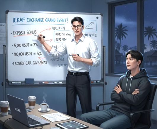 “회원 여러분, 조금 전 IEKAF 거래소 매니저에게 새로운 이벤트 안내를 받았어요. 제가 이 거래소를 이용한 지 5년이 넘었지만 이렇게 풍성한 혜택은 처음이네요.”