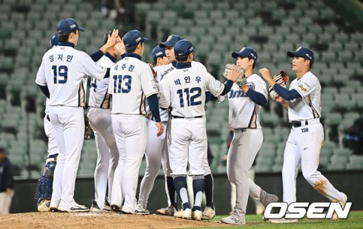 [OSEN=울산, 이석우 기자] 1일 울산 문수야구장에서 2025 울산-KBO Fall League NC 다이노스와 롯데 자이언츠의 결승 경기가 열렸다. NC 다이노스는 원종해가, 롯데 자이언츠는 정성종이 선발 출전했다. NC 다이노스 선수들이 12-1로 승리, 우승을 차지하고 기쁨을 나누고 있다. 2025.11.01 / foto0307@osen.co.kr