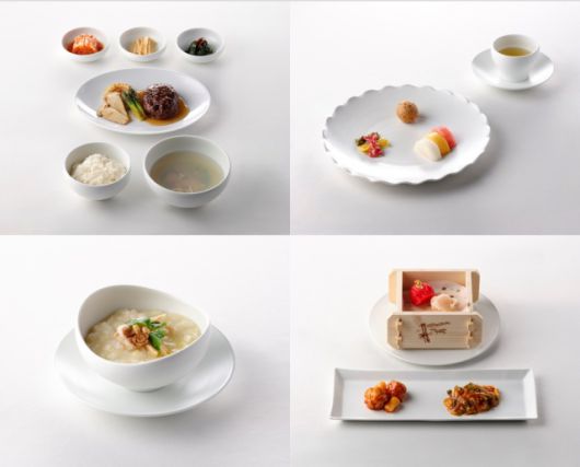 메인 메뉴로는 경주의 한우를 다져 빚은 떡갈비 구이와 백합국, 3찬(취나물, 더덕구이, 배추김치)이 올랐다. 올해 한중 수교 33주년을 기념하는 의미를 담아 한국의 삼색 매작과와 삼색 과일도 준비됐다. 또 중국 디저트인 지마구를 보성녹차와 함께 내 만찬의 여운이 오래 기억되기를 바라는 마음을 담았다.