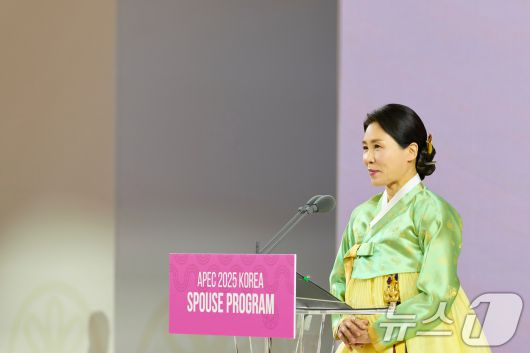 김혜경 여사가 31일 경북 경주 우양미술관에서 열린 APEC 정상회의 계기 배우자행사 오찬에서 발언하고 있다. (대통령실 제공. 재판매 및 DB 금지) 2025.10.31/뉴스1 ⓒ News1 허경 기자 |