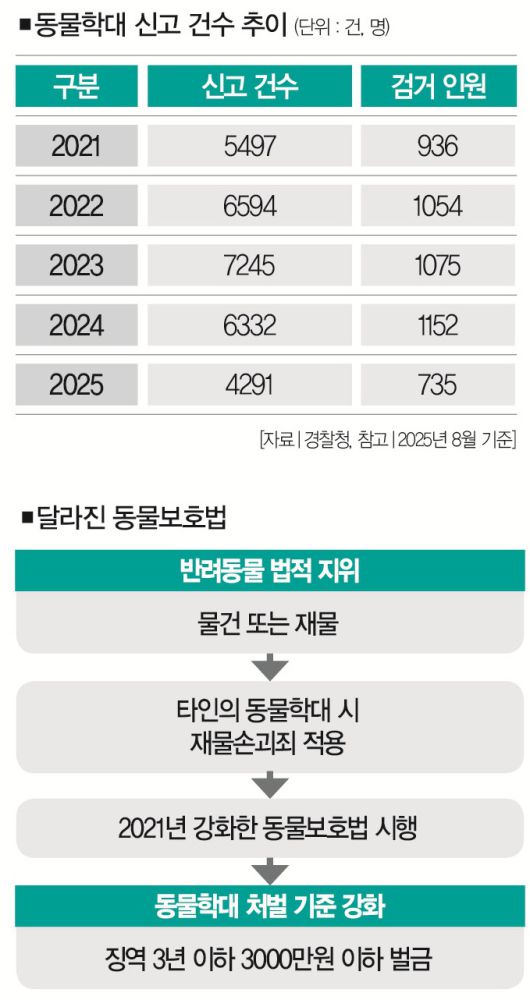 [※참고: 민법상 반려동물의 법적 지위는 여전히 물건 또는 재물에 해당한다. 2021년 10월 법무부가 '동물은 물건이 아니다'는 민법 개정안을 발의했지만 법원행정처의 반대로 논의가 중단됐다. 지난해 6월 22대 국회에서도 관련법을 발의했지만 아직까지 위원회 계류 중이다.]