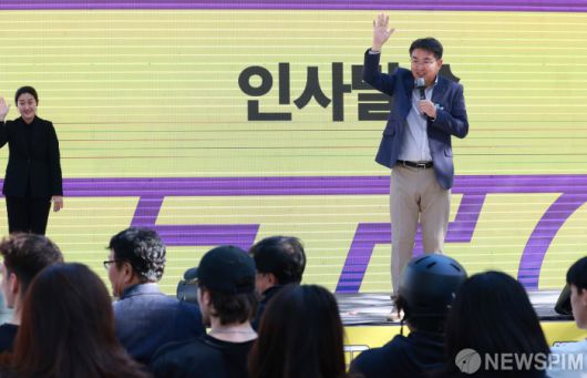 [서울=뉴스핌] 양윤모 기자 = 오승록 노원구청장이 1일 오후 서울 노원구 노해체육공원에서 열린 ‘노원 익스트림 챌린지’ 개막 행사에 참석해 인사말을 하고 있다. 지난해 리모델링을 통해 조성된 노해체육공원의 ‘노원X-TOP’은 동북권 유일의 X-게임 전용 공간이다. 콘크리트 재질을 활용해 안전성을 확보했고, 다양한 익스트림 스포츠 장르를 소화할 수 있도록 3개의 섹션으로 구성된 것이 특징이다. 구는 이 공간을 활용해 도전을 추구하는 이들의 열정과 도전 정신을 응원하고자 스포츠 문화 축제를 마련했다. [사진=노원구청] 2025.11.01 yym58@newspim.com