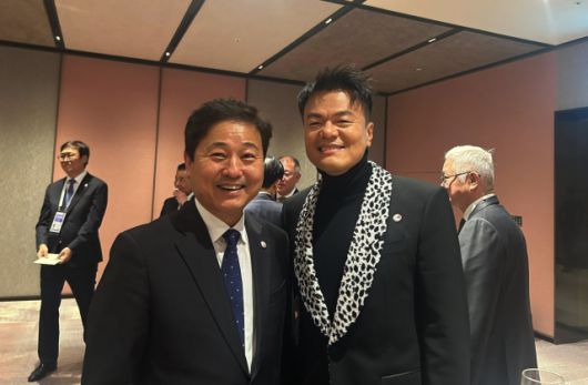 사진에는 박진영 대중문화교류위원장과 시진핑 주석, 이재용 삼성전자 회장, 최태원 SK그룹 회장, 정의선 현대차그룹 회장 등과 함께 찍은 모습이 담겼다. 김 의원은 “이재명 대통령, 시진핑 주석과 박진영 대중문화교류위원장이 얘기를 나누다 시진핑 주석이 북경에서 대규모 공연을 하자는 (한국 측) 제안에 호응해 왕이 외교부장을 불러 지시하는 장면이 연출됐다”고 전했다.