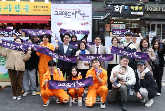 [이데일리 김태형 기자] 박준희 관악구청장이 1일 지역 대표 상권 샤로수길에서 열린 샤로수길 로컬이벤트 ‘그라운드 샤로수’에 참석해 청년들과 기념촬영을 하고 있다. 이번 축제는 ‘그라운드 샤로수’를 대주제로 ▲Ground Vibe ▲Ground Play ▲Ground Taste 등 3가지 테마가 샤로수길을 따라 다채롭게 진행됐다. (사진=관악구)