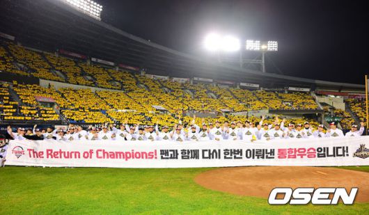 LG 선수들이 플래카드를 하고 있다. 2025.11.01 / rumi@osen.co.kr
