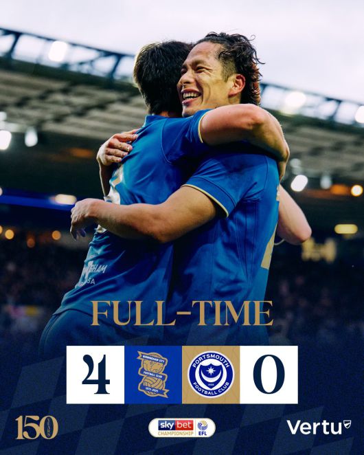 버밍엄 시티는 2일(한국시간) 영국 버밍엄의 세인트 앤드루스 스타디움에서 열린 2025-2026시즌 챔피언십 13라운드 홈경기에서 포츠머스를 4-0으로 완파했다.