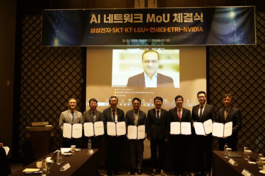 2일 관련업계에 따르면 지난달 31일 삼성전자와 통신3사(SK텔레콤·KT·LG유플러스), 한국전자통신연구원(ETRI), 연세대학교 그리고 엔비디아가 AI랜 기술의 공동 연구 및 실증을 위한 업무협약(MoU)을 체결했다.