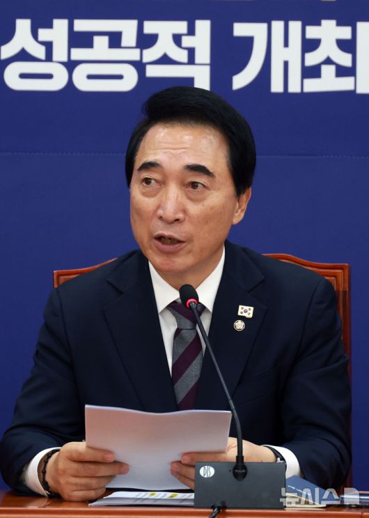 [서울=뉴시스] 고승민 기자 = 박수현 더불어민주당 수석대변인이 2일 서울 여의도 국회에서 국정감사 등 현안 관련 기자간담회를 하고 있다. 2025.11.02. kkssmm99@newsis.com