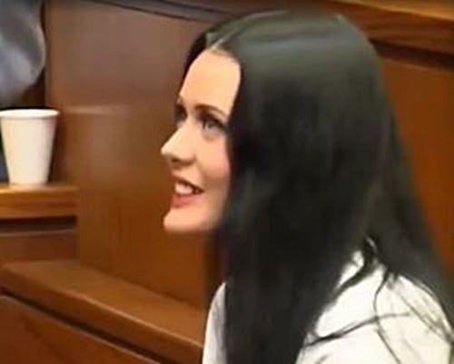 남자 친구의 어린 딸을 성폭행한 뒤 살해한 혐의를 받는 20대 여성 앰버 리 휴스가 법정에서 섬뜩한 미소를 보이고 있다. /더선 보도화면 |