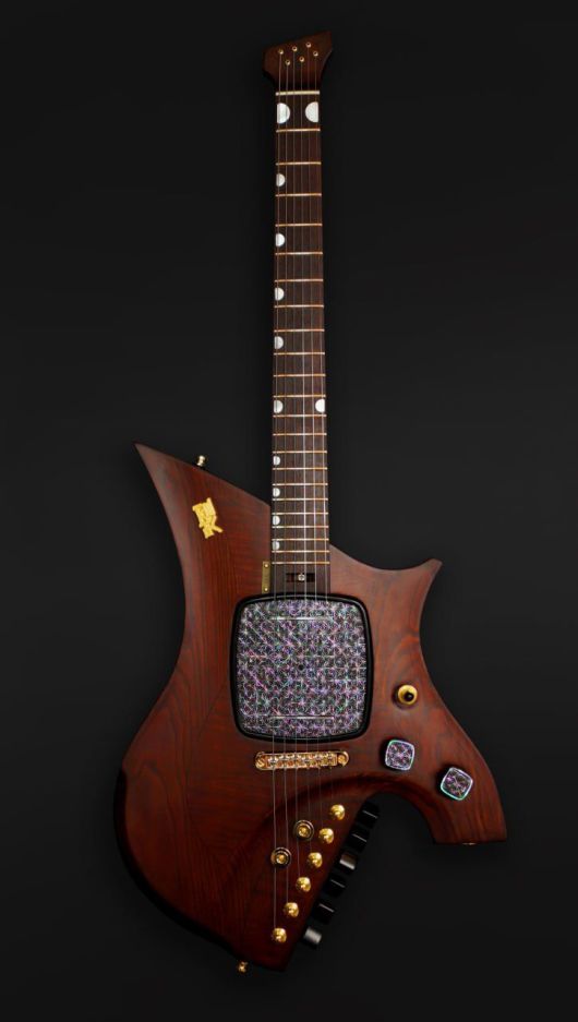 이재명 대통령이 로렌스 웡 싱가포르 총리에게 선물한 나전칠기 장식이 된 일렉트릭 기타. 대통령실 제공 |