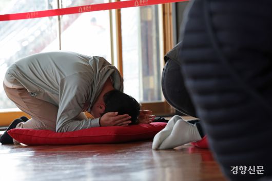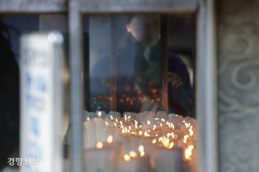 2026학년도 대학수학능력시험을 11일 앞둔 2일 서울 강남구 봉은사를 찾은 학부모가 자녀의 사진을 놓고 기도하고 있다. 정효진 기자 |