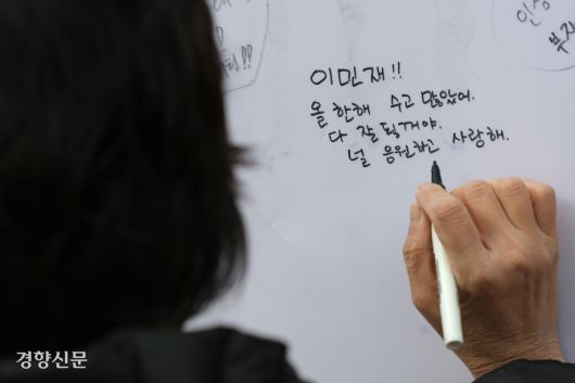 오는 13일 치러지는 대학수학능력시험을 11일 앞둔 2일 서울 강남구 봉은사를 찾은 방문객들은 ‘수능 대박’을 기원하며 기도를 올렸다. 이날 봉은사를 찾은 변재술씨는 수능을 앞둔 딸 지윤양이 “하던 대로, 실수 없이, 무탈하게” 했으면 좋겠다면서 응원 메시지를 남겼다.