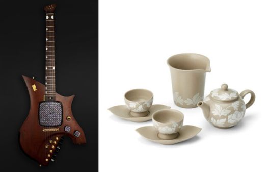 이재명 대통령이 2일 정상회담을 위해 방한한 로렌스 웡 싱가포르 총리에게 나전칠기로 장식된 일렉트릭 기타를, 루 즈 루이 여사에게 목련 문양 다기 세트를 선물했다. 대통령실 제공 |