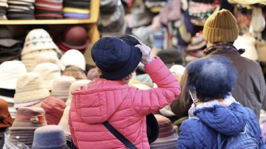 한 시민이 방한용품을 고르고 있다. /연합뉴스 |