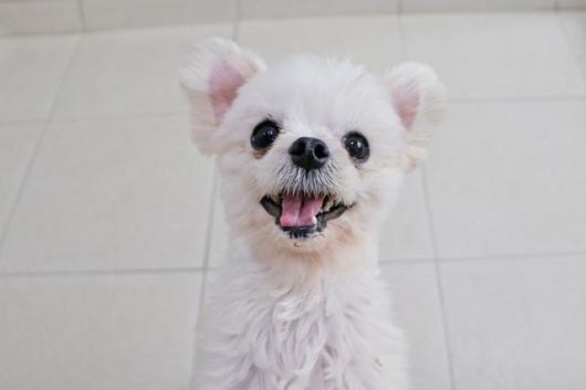 미용 실습에 동원됐던 구조견 포메라니안 종 '세루'가 입양을 기다리고 있다. 동물자유연대 제공 |