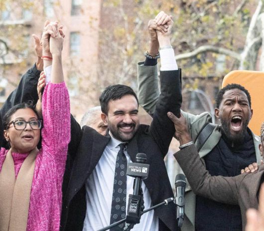 사실상 무명에 가까웠던 정치 신인 맘다니 후보는 지난 6월 민주당 뉴욕시장 후보 경선에서 정계 거물인 쿠오모 전 주지사를 꺾으면서 돌풍을 몰고 왔다. 주택상담사, 래퍼 등 독특한 이력과 더불어 고물가에 시달리는 뉴욕 서민층의 생활 형편을 개선하겠다고 내건 공약이 주목받았다. 버니 샌더스 상원의원(무소속·버몬트), 알렉산드리아 오카시오코르테스 하원의원(민주·뉴욕) 등 진보 진영의 전폭적인 지지를 받았다. 지난 대선에 민주당 후보로 출마했던 카멀라 해리스 전 부통령도 지난 9월 맘다니 후보에 지지 입장을 표했다.