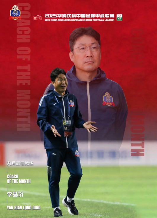 이 감독은 최근 중국 갑급리그(2부리그)가 발표한 '9월의 감독상'을 수상했다. 이 감독이 이끄는 옌벤은 9월 치른 3경기에서 모두 승리했다. 같은 기간 전승을 거둔 팀은 옌벤이 유일했다. 이 감독은 지도력을 인정받아 '9월의 감독상'을 거머쥐었다.