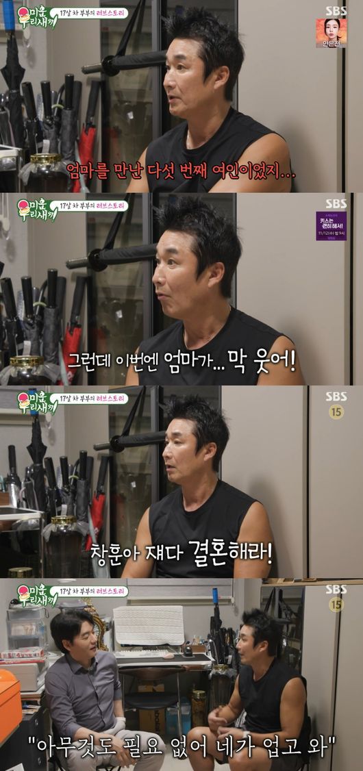 어머니는 두 번째 식사 후 이창훈에게 “쟤다. 결혼해라. 아무것도 필요 없다. 네가 업고 와라”라고 했다는 것. 연애한 지 3개월 만에 허락받았다는 이창훈은 “내가 다 해주라고 했다. (어머니가) 너는 행복할 거라고 했다. 그게 딱 맞았다. 지금까지 행복하게 산다”라고 전했다.