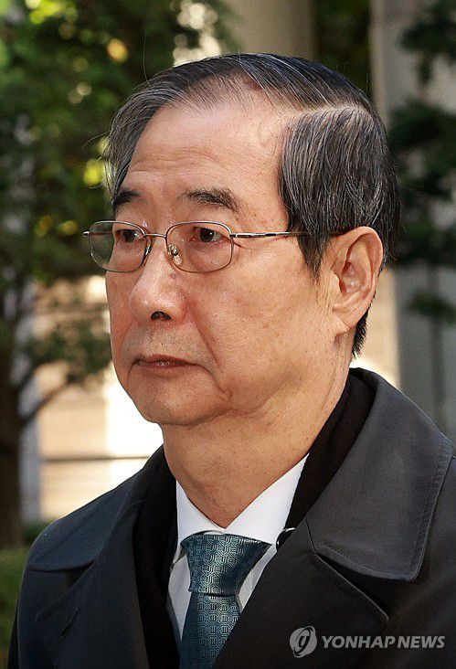(서울=연합뉴스) 한종찬 기자 = 내란 우두머리 방조 혐의를 받는 한덕수 전 국무총리가 3일 서울 서초구 서울중앙지방법원에서 열린 내란 우두머리 방조 및 위증 등 혐의 사건 재판에 출석하고 있다. 2025.11.3