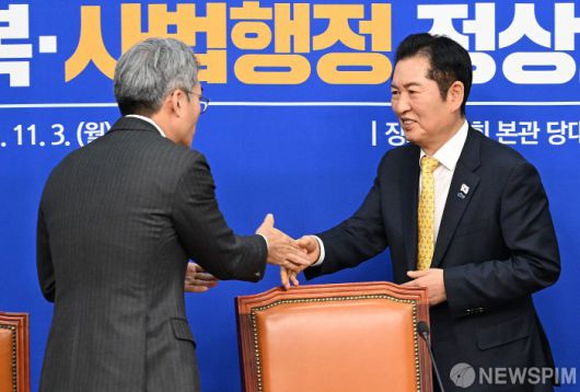 [서울=뉴스핌] 정일구 기자 = 정청래 더불어민주당 대표가 3일 오전 서울 여의도 국회에서 열린 사법불신 극복·사법행정 정상화 TF 출범식에 참석하고 있다. 2025.11.03 mironj19@newspim.com |