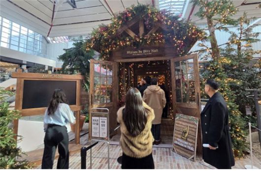 아시아투데이 이태경 인턴 기자·정문경 기자 = 3일 오전 9시 마주한 서울 여의도 더현대 5층 '사운즈 포레스트'는 눈 내리는 동화 속 마을처럼 변신해 따뜻한 크리스마스 감성을 품고 있었다.