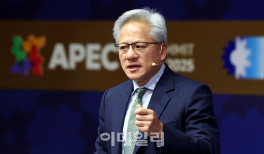 젠슨 황 엔비디아 CEO가 31일 경북 경주예술의전당에서 열린 APEC CEO 서밋에서 특별세션 기조연설을 하고 있다. (사진=뉴시스) |