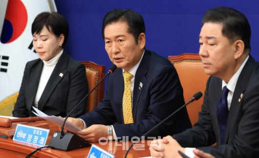 정청래 더불어민주당 대표가 3일 오전 국회에서 열린 최고위원회의에서 모두발언을 하고 있다. 사진 우측은 김병기 원내대표. (사진=노진환 기자) |