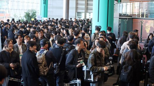 SK AI 서밋에 몰린 인파 3일 'SK AI 서밋 2025'에서 관람객들이 기조연설 입장을 위해 줄지어 대기하고 있다. 뉴스1 |