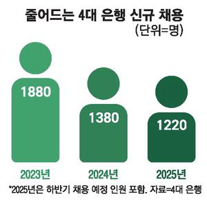 일각에선 AI 은행원 도입으로 은행권 일자리가 줄어들 수 있다는 우려가 나온다. 특히 은행원 채용이 감소할 것이라는 분석이 나온다. 실제로 4대 은행(KB국민·신한·하나·우리)의 최근 3년간 신규 행원 채용은 계속 줄고 있다. 2023년 4대 은행의 신입 행원 수는 1880명이었지만, 2024년엔 1380명으로 1년 만에 30% 가까이 감소했다. 올해도 현재 진행 중인 하반기 채용 예정 인력을 포함해 약 1220명만 고용될 전망이다.