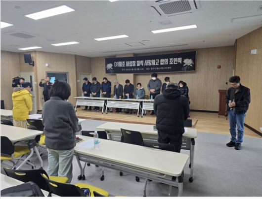 유족들과 유족을 대리한 권영국 변호사( 정의당 대표)와 원청업체와 수급업체 대표는 3일 오전 경주시 황오커뮤니센터에서 조인식과 기자회견을 갖고 3명이 숨진 이번 사고에 대한 안타까움 속에서도 비교적 일찍 배상과 합의에 이르게 된 배경과 의미에 대해 설명했다.