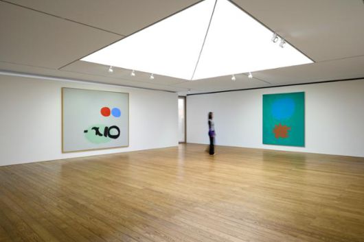 아돌프 고틀리브의 '폭발(Burst)' 연작에 해당하는 1972년작 'Red vs Blue'(왼쪽)와 1962년작 'Expanding'이 페이스갤러리 서울에 전시된 모습. 페이스갤러리 서울 제공 |