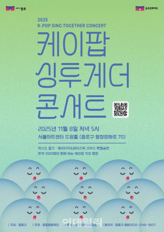 [이데일리 김태형 기자] 종로구(구청장 정문헌)는 11월 8일 서울아트센터 도암홀(평창문화로 70)에서 ‘케이팝 싱투게더 콘서트’를 개최한다.