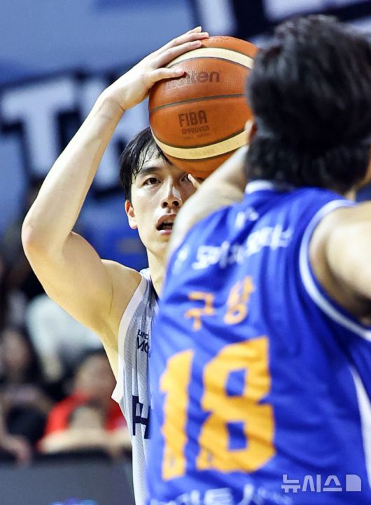 [서울=뉴시스] 최진석 기자 = 3일 서울 송파구 잠실실내체육관에서 열린 2025-2026 KBL 프로농구 울산 현대모비스와 서울 삼성의 경기, 현대모비스 박무빈이 3점슛을 쏘고 있다. 2025.11.03. myjs@newsis.com