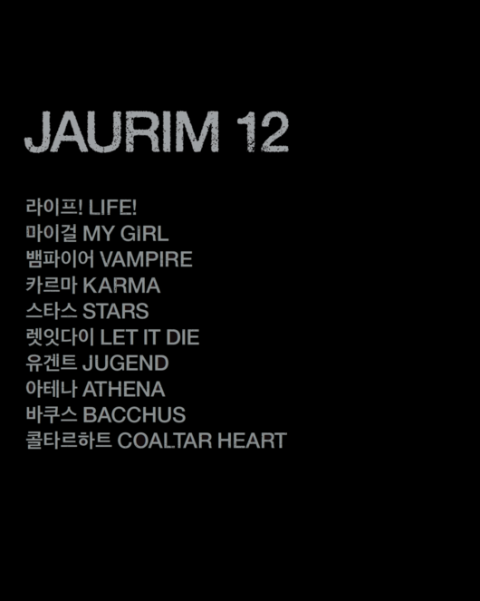 공개된 트랙리스트에 따르면 앨범에는 '라이프! LIFE!'를 시작으로 '마이걸 MY GIRL', '뱀파이어 VAMPIRE', '카르마 KARMA', '스타스 STARS', '렛잇다이 LET IT DIE', '유겐트 JUGEND', '아테나 ATHENA', '바쿠스 BACCHUS', '콜타르 하트 COALTAR HEART'까지 총 10트랙이 담겼다.