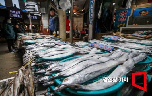 서울 동대문구 경동시장에 수산물이 진열돼 있다. 강진형 기자 |
