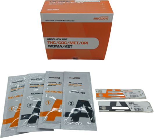 앱솔로지가 개발한 진단키트는 소변 샘플 몇 방울만으로 필로폰, 코카인, 대마, 아편, 엑스터시, 케타민 등 6종의 마약 성분을 검출한다. 기존의 간이 검사 키트는 육안 판독 방식이라 위양성(가짜 양성) 가능성이 높아 법적 신뢰도에 한계가 있었으나, 앱솔로지의 제품은 국립과학수사연구원 등에서 사용하는 LC-MS 수준에 근접한 정밀도를 현장에서 구현한 것이 핵심이다.