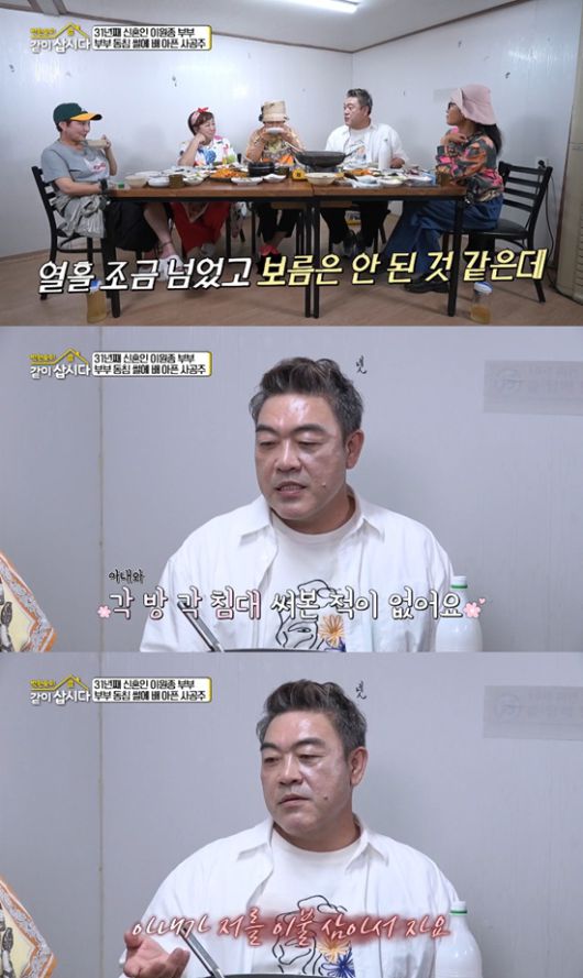 이원종은 "저는 아직 각방, 각침대를 써 본 적이 없다"며 결혼 31년 차에도 알콩달콩한 부부 사이를 자랑했다. 혜은이가 "요즘은 각방 쓰는 게 유행이다"며 신기함을 드러내자 이원종은 "저는 열이 좀 많고 그러니 침대가 좀 차가웠음 좋겠고, 그 사람은 따뜻했으면 좋겠고 하니 저를 이불 삼아 잔다"며 후끈한 부부의 침실 썰을 풀어냈다.