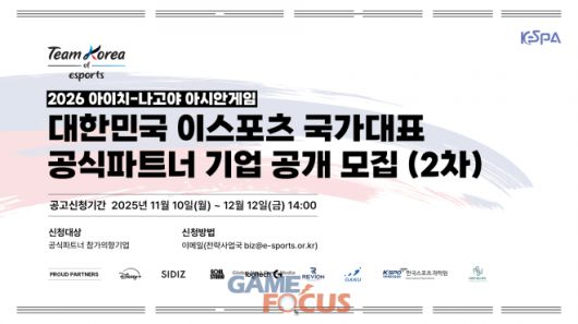 한국e스포츠협회(이하 협회)는 오는 10일(월)부터 2026 아이치·나고야 아시안게임에 출전하는 대한민국 이스포츠 국가대표팀(이하 대표팀)의 공식 파트너사를 추가 모집한다고 4일(화) 밝혔다.
