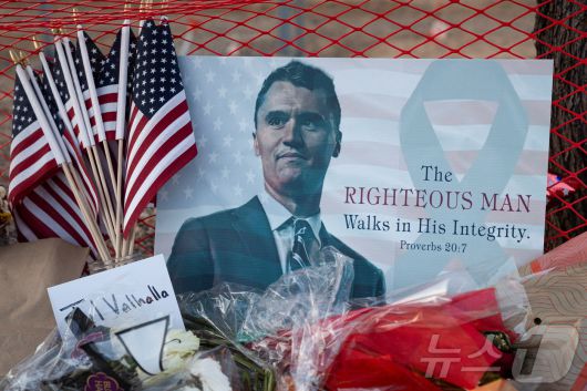 미국 애리조나주 피닉스의 터닝포인트USA 본부에 마련된 찰리 커크의 추모 장소. 2025.09.12. ⓒ 로이터=뉴스1 ⓒ News1 윤다정 기자 |