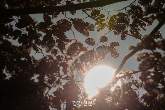 아무래도 올해 단풍은 조금 멀리서 봐야겠습니다. 여름이 10월까지 이어지며 나뭇잎들은 제때 옷을 갈아입지 못했습니다. 강한 햇살은 잎의 끝을 태웠고, 그늘에서는 색이 돌지 않았습니다. 가까이서 보면 상처가 먼저 보입니다. 구멍 난 잎맥, 부서진 가장자리, 여름과 겨울이 뒤섞인 어색한 흔적들. 하지만 멀리서, 아주 멀리서 바라보면 이야기가 달라집니다.