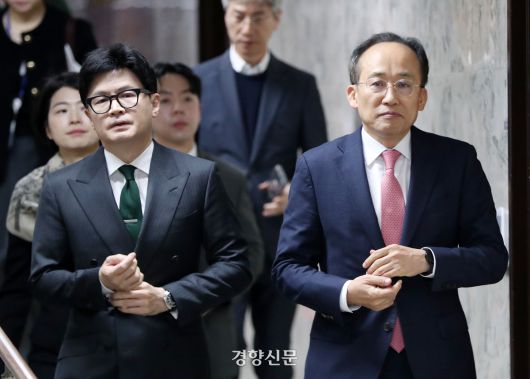 한동훈 전 국민의힘 대표(왼쪽)와 추경호 전 원내대표. 박민규 선임기자 |