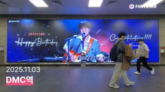 "박창근 생일 축하해요" 5일 가수 박창근의 생일을 맞아 서울 마포구 디지털미디어시티역 공항철도 AM보드를 통해 축하 영상이 상영 중이다. /팬앤스타 |