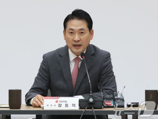 장 대표는 한미 관세협상 후속 처리와 관련해선 "이번 관세협상에 따라서 기업들이 많은 부담을 안게 됐다"며 "그 외에도 국민 1인당 1000만 원 가까운 부담을 지는 관세 협상을 해놓고 국회에 비준을 받지 않겠다는 것은 어떤 오만함인지 잘 모르겠다"고 비판했다.