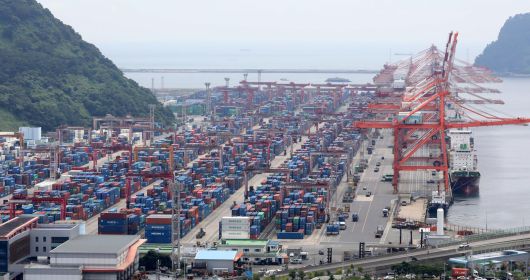 부산항 신선대부두 야적장에 컨테이너가 가득 쌓여 있는 모습. News1 |