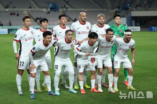 [서울=뉴시스] 조성우 기자 = 4일 오후 서울 마포구 서울월드컵경기장에서 열린 2025-2026 아시아축구연맹(AFC) 챔피언스리그 엘리트(ACLE) 리그 스테이지 4차전 FC서울과 청두 룽청의 경기, 청두 베스트 11 선수들이 기념촬영하고 있다. 2025.11.04. xconfind@newsis.com