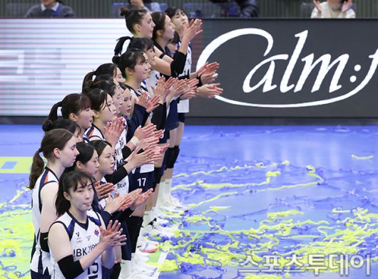 [수원=스포츠투데이 팽현준 기자] 4일 경기도 수원실내체육관에서 열린 V리그 여자부 현대건설과 IBK기업은행의 경기, 기업은행이 0-3으로 패하고 있다. 2025.11.04. [스포츠투데이 팽현준 기자 sports@stoo.com]
