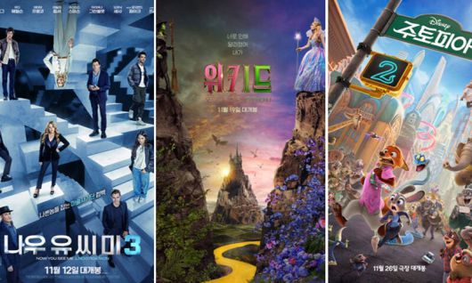 영화 ‘나우 유 씨 미 3’(12일 개봉), ‘위키드: 포 굿’(19일 개봉, 이하 ‘포 굿’), ‘주토피아 2’(26일 개봉) 등 할리우드 대형 프랜차이즈 후속작이 한 주 차로 연달아 개봉을 앞두고 있어서다.