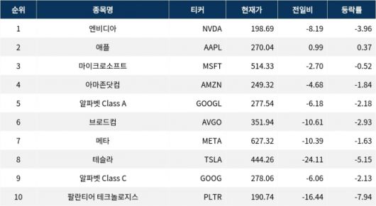 엔비디아는 이날 3.96% 하락하며 198.69 달러에 마감했다. 마이크로소프트(MSFT) 역시 0.52% 하락한 514.33 달러에 거래를 마쳤다. 테슬라는 가장 큰 하락폭을 기록하며 5.15% 하락, 444.26 달러에 거래됐다.
